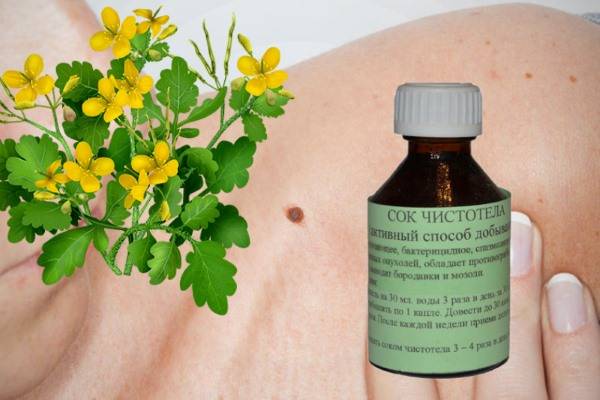 - обрабатывая чистотелом поверхность папилломы 3 раза в день можно за короткий срок избавиться от нее. При проведении такой процедуры нужно учитывать, что растение считается ядовитым и моет вызвать ожог на коже;