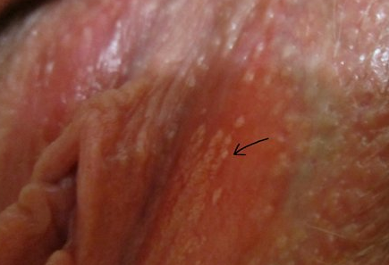 Папилломы на больших половых губах плоские, диагностировать намного проще — они заметны невооруженным глазом. По внешним признакам ничем не отличаются от образований на других слизистых оболочках. Как выглядит бородавка можно увидеть на фото ниже.